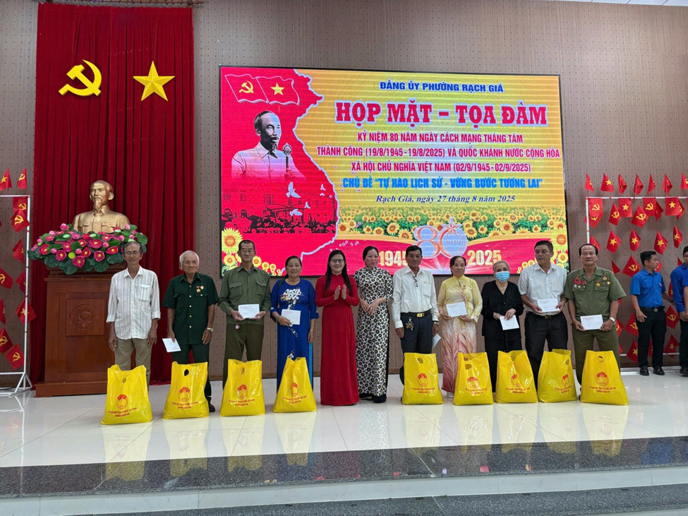 Với vai trò nòng cốt, Uỷ ban MTTQ Việt Nam phường Rạch Giá, Đảng ủy phường, Đoàn Thanh niên phường đã chủ động tham gia từ công tác chuẩn bị, truyền thông cho đến điều phối chương trình. Các bạn đoàn viên còn mang đến nhiều tiết mục văn nghệ, chiếu phim tư liệu và đặc biệt là trao 10 phần quà cho gia đình chính sách có hoàn cảnh khó khăn – hành động thiết thực, lan tỏa tinh thần nhân ái và đạo lý “uống nước nhớ nguồn”.