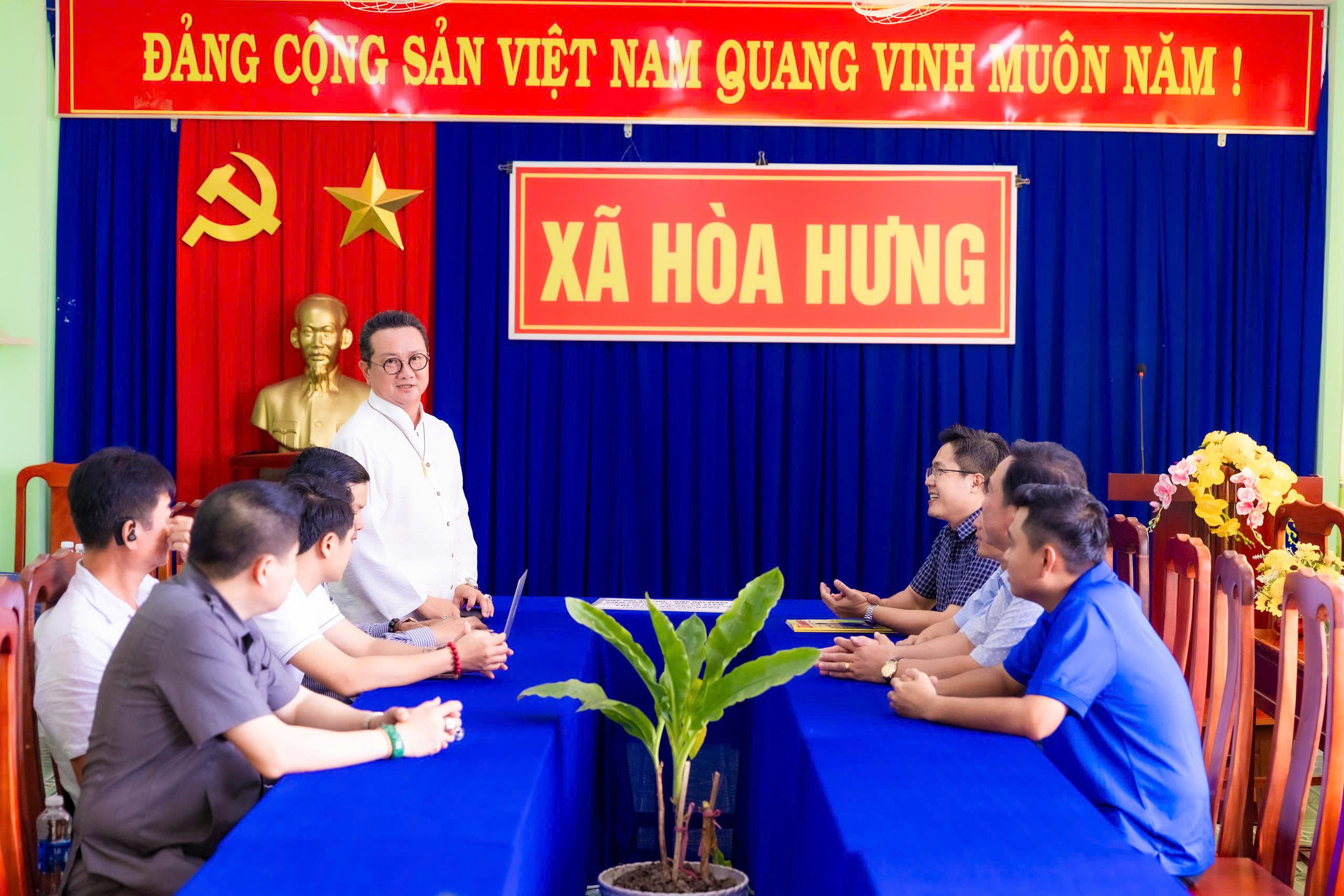 Toàn cảnh buổi trao kinh phí xây nhà tình thương và triển khai chương trình tiếp tục đồng hành hỗ trợ chương trình an sinh xã hội tại xã Hoà Hưng - An Giang của đoàn công tác.