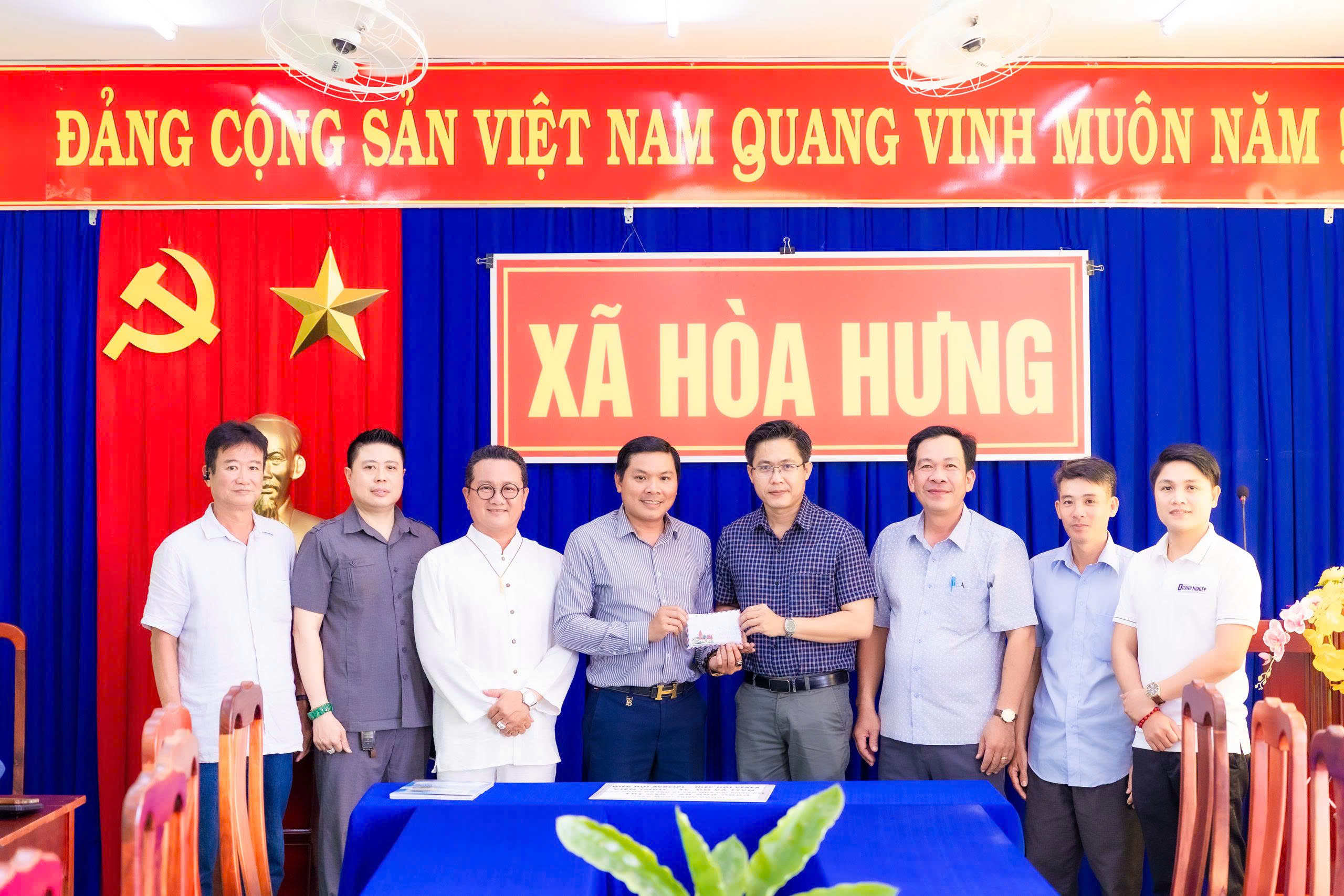 Đại diện UBND xã Hoà Hưng tiếp nhận kinh phí xây dựng nhà tình thương có ông Huỳnh Minh Trung – Phó Chủ tịch UBND xã Hoà Hưng, ông Nguyễn Văn Mến – Phó Trưởng phòng văn hoá xã Hoà Hưng, ông Nguyễn Thanh Giang – Bí thư chi bộ ấp Hoà B, ông Ngô Tuấn Mạnh – Phó Chủ tịch UBMTTQ Việt Nam xã Hoà Hưng.