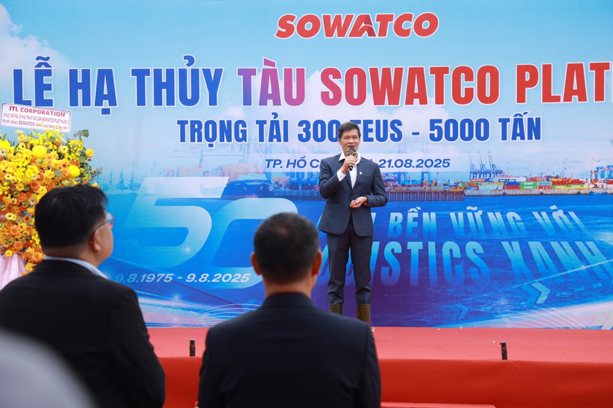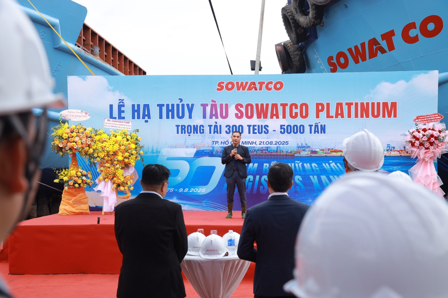 Chia sẻ tại sự kiện, ông Vũ Trường Tôn Hiển – Giám đốc Nhà máy Đóng tàu Sowatco cho biết: “Tôi thực sự rất vui và tự hào khi chứng kiến giây phút hạ thủy con tàu container 300 TEUs – thành quả của biết bao nỗ lực, đoàn kết và trách nhiệm của tập thể Sowatco trong suốt hơn một năm qua. Khó khăn lớn nhất mà chúng tôi gặp phải là tiến độ gấp gáp, nhưng nhờ tinh thần đồng lòng và năng lực kỹ thuật dày dạn, chúng tôi không chỉ hoàn thành đúng cam kết mà còn vượt tiến độ. Con tàu Sowatco Platinum không chỉ là minh chứng cho năng lực thiết kế – đóng mới – sửa chữa tàu quy mô lớn của chúng tôi, mà còn là bước đi tiên phong trong việc áp dụng công nghệ hiện đại, thân thiện môi trường, góp phần nâng tầm ngành đóng tàu Việt Nam. Tôi tin rằng Platinum sẽ góp phần nâng cao hiệu quả vận tải thủy, giảm phát thải và thúc đẩy phát triển logistics xanh.”